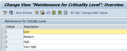 Maintain criticality level in Customizing