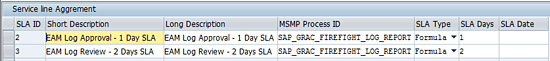 - If the criticality level assigned to a firefighter ID is High (03 - IV_CRITICALITY), then the number of days for the SLA should be 2 days plus the system date (003 – SLA_ID).