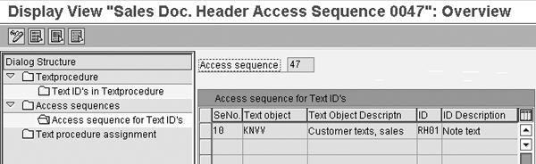 and click on the Access sequence for Text ID’s folder to display the access sequence details