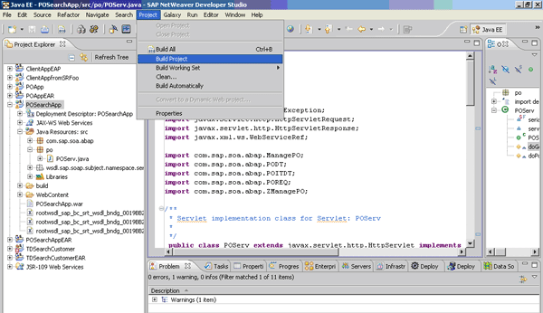- From the main menu, select Project > Build Project to build the necessary EAR files required to successfully implement the project, as shown in Figure 27, and check for any errors. If there are errors, the Problems tab displays them.