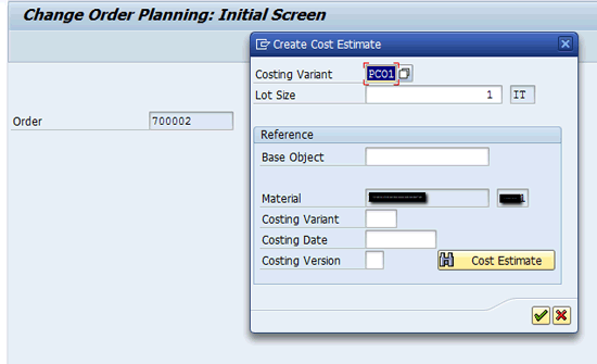 Specify the costing variant and lot size for plan cost for the CO production order