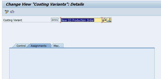 Figure 5 shows the next tab of the costing variant, Assignments. Note that you cannot configure anything under the Assignments tab. No configuration is available under the next tab, Misc., either.