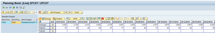 Planning area defines the area in which most of the planning activities take place. It groups together both characteristics and key figures under a single domain. A planning area is created via transaction /SAPAPO/MSDP_ADMIN. It contains three key figures: Forecast and two additional key figures, Future5 and Future6, as shown in Figure 2. The two future key figures (Future5 and Future6) are used to show the modeling of independent variables in the business scenario context later in the article, while the Forecast key figure is the dependent variable.