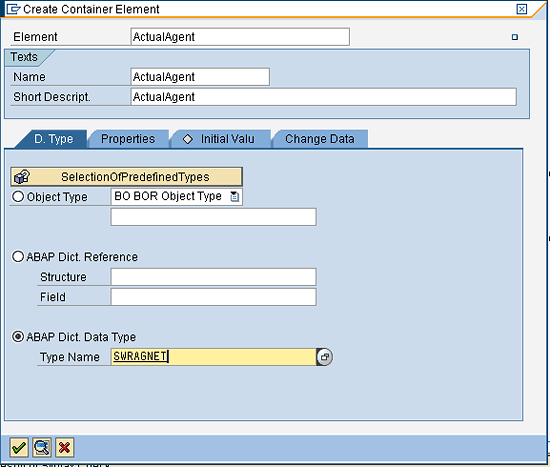 In my example I name my distribution list object name DistList (Figure 5). Enter a short description of this object and select ABAP Dict. Data Type. Enter SWRAGENT as the ABAP dictionary structure to store the agent type and ID.