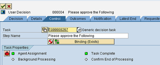 To get the actual agent from the above user decision, double-click the user decision labeled Please approve the following in Figure 10. Go to the Control tab (Figure 12).