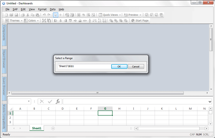 SAP Dashboards 4.1 (formerly known as Xcelsius) is a major tool of the BusinessObjects 4.1 application suite that has numerous features for making user-friendly, dynamic dashboards. Originally SAP Dashboards only allowed for visualization of data that was embedded in Microsoft Excel. However, an enhancement in the 4.1 release of SAP Dashboards, Query Builder, allows developers to pull data directly from a BusinessObjects Universe. Fundamentally, the Query Builder enables the integration of data stored within a database into a dashboard component through the use of a Universe. Now data can be retrieved from a database and the functionality of the embedded Excel spreadsheet within SAP Dashboards4.1 can be greatly extended.