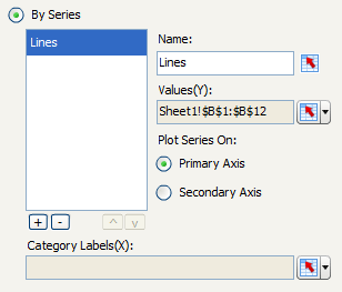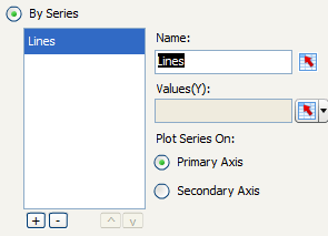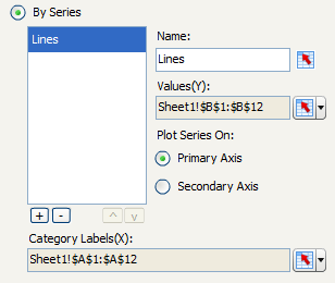 In either case, on the right side under Data select the By Series radio-button option (Figure 14 or 15). (It may be necessary to scroll down in the panel to see this option.) In the Series textbox that expands underneath, select the plus-sign icon