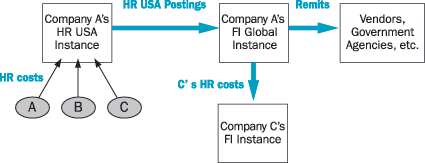 - The HR postings for Company C need to be handled in a different manner, based on Company C’s management’s needs. Company C has its own, separate FI system instance in Germany to process the costs associated with the IT services provided to companies A and B. HR-related costs for U.S. employees from Company C pass through Com- pany A’s FI system to C’s FI system, which summarizes it as needed.