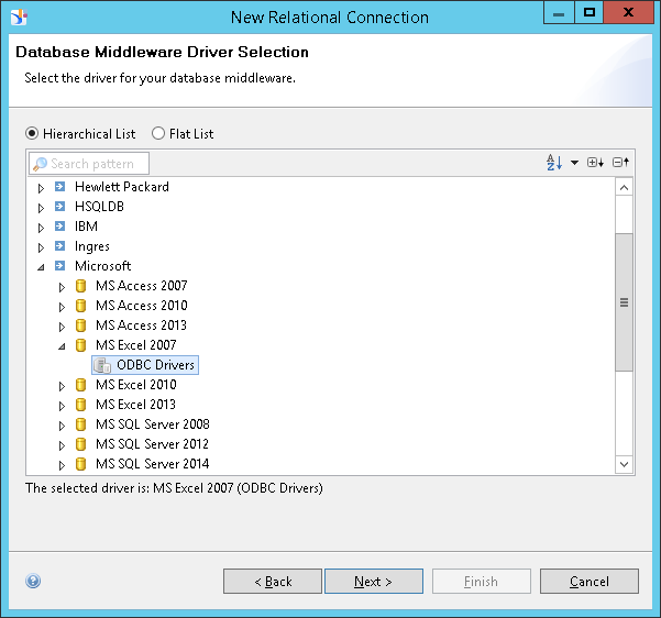 12. In Figure 17, select the appropriate middleware driver for the Excel connection. Click the Next button to go to the screen shown in Figure 18.