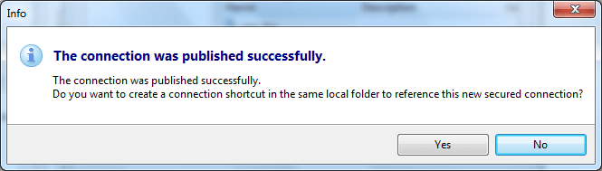 If the connection is successfully published to the SAP BusinessObjects repository, the system displays a pop-up window as shown in Figure 23.