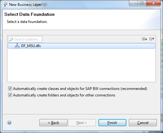 24. Select the data foundation saved as DF_MSU as shown in Figure 33. Click the Finish button.