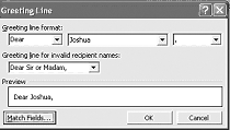 The Greeting Line (Figure 11) allows the user to determine to address the reader’s name.