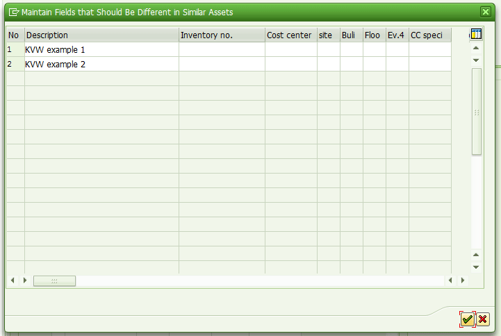If you want to identify each asset not only by its number but also by its description and serial number, the original functionality for creating multiple assets is not the most efficient way. If you create multiple assets in this way, you need to update each asset individually after you create it. Since the introduction of SAP ERP Central Component (ECC) 6.0, it is also possible during the creation of multiple assets to maintain selected fields for each individual asset. When you use this functionality, you do not need to complete an update afterward. This makes it a very user-friendly option.