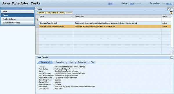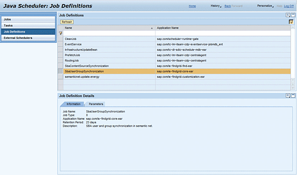 - Scheduler Service: Provides the maintenance of job scheduling. This means creation, modification, and deletion of job definitions that are persisted in the SAP NetWeaver AS Java database.