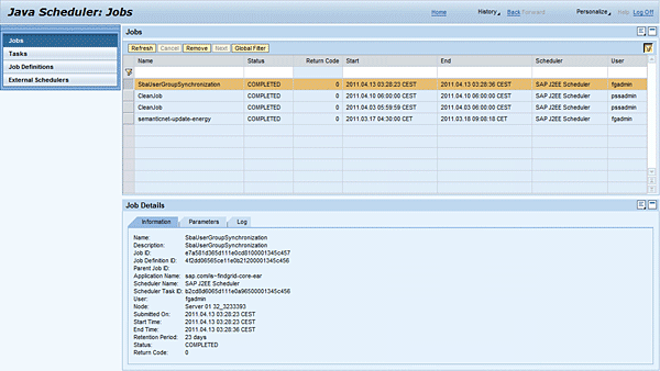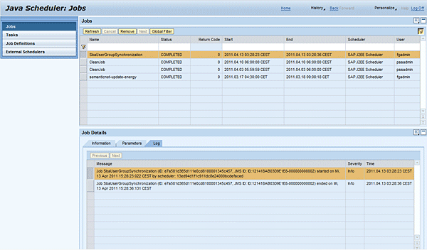 Because SAP NetWeaver AS Java also supports cluster configuration, Java Scheduler allows you to retrieve logs written by a particular job on different cluster nodes (where the job ran).