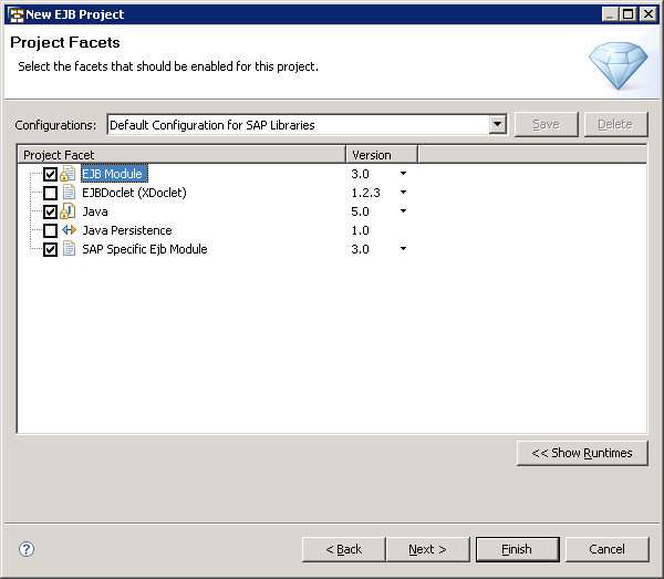 Finally, you should set the EJB Module and SAP Specific Ejb Module options to project facets, which are required to build a particular EJB project (Figure 20). Also select the Java check box. Click the Finish button and SAP NetWeaver Developer Studio creates the EJB project with the required compilation dependencies.