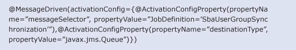 The generated EJB class UserSynchronizationJobBean.java automatically contains the reference to the Java message-driven bean (Figure 25).
