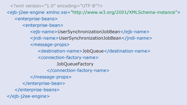 - ejb-j2ee-engine.xml: deployment descriptor for message-driven beans