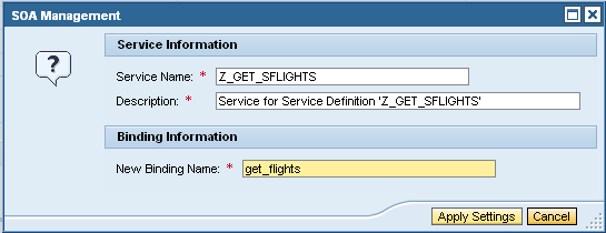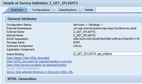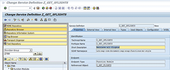 - Details of service definition: Z_GET_SFLIGHTS (Figure 27)