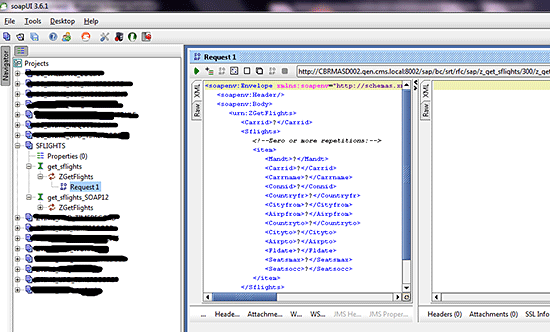Click Request 1 under the Projects node SFLIGHTS > get_sflights > ZGetFlights. On the left bottom of the same screen, enter your username and password (Figure 33).