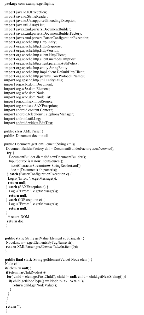 I created a class XMLParser.java that gets the data from the Web service (Figure 37).