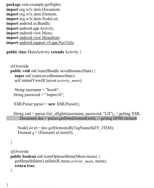 At last you come to the main activity, which calls the xmlparser (Figure 41).