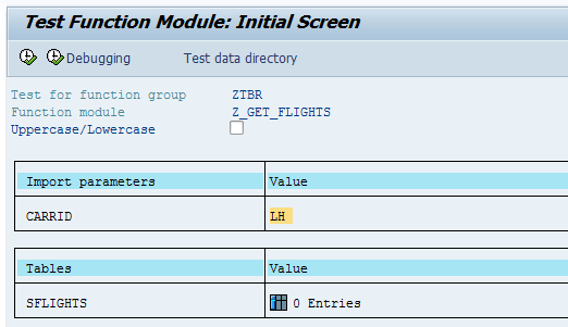 Next, click the activate button to activate the function module. Now you can test the function module by pressing F8. In the resulting screen (Figure 8), enter LH in the CARRID field and click the execute icon