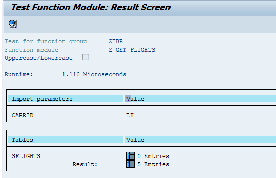 The function module retrieves all the flights with the parameter CARRID LH and returns them in a table (Figure 9).