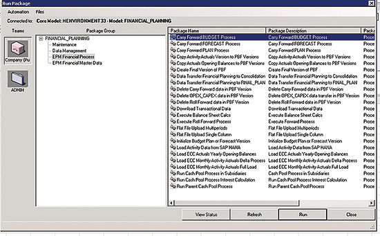The benefit of running the EPM 10.0 customized solution is that the equivalent of all the transaction codes from ECC has been substituted by the click-and-run processes. In this way, the EPM 10.0 customized solution performs the CO and FI processes without transaction codes and just uses a data management package, click-and-run functionalities that run all calculations behind the scenes using different scripts, and Business Add-Ins (BAdIs). However, the most important element of using this design with EPM technology is that the partner information (partner cost center, partner profit center, and partner company code) is retained, and the relationship with the G/L account and the cost element is also maintained. ECC has difficulties maintaining this kind of traceability. Note that there are no empty fields in any posting, and it is easy to track the source and target of the cost assignments, allocations, and distributions as part of the operational and capital expenditure (OPEX). Note also that the EPM customized solution supports FI calculations such as roll forward, carry forward, and opening balances.