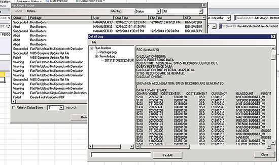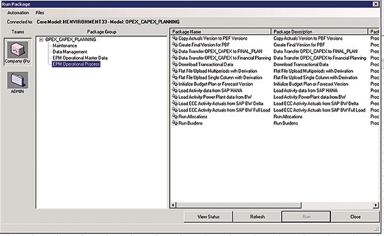 Reviewing the execution run of the Burdens package as part of the customized SAP EPM 10.0 solution powered by SAP HANA