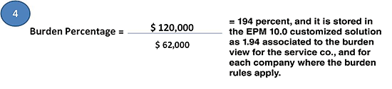 4. The calculation of a burden rate is equal to the numerator of $120,000 divided by $62,000. The results are shown in
