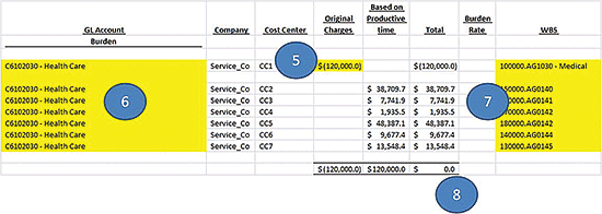 3. The charges performed by the employees (productive time) are done to specific health-related G/L accounts that have been identified as part of the calculation using properties. As shown in