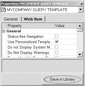 Customized Web items can be saved to the library for efficient reuse in other Web templates. After you make the changes to the Web items in your standard template, use the Save in Library button to add the customized item to the library (Figure 5). Create the library object by providing a name and description.
