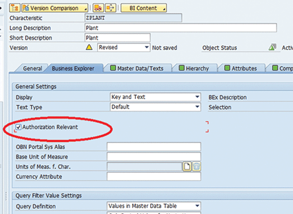 Next, you need to set the InfoObject ZPLANT (a copy of a standard 0Plant) as authorization-relevant to enable analysis authorizations by site. Go to the Business Explorer tab (shown in Figure 3), and tick the Authorization Relevant check box to enable analysis authorizations. Then activate the InfoObject by clicking the activate icon (not shown).