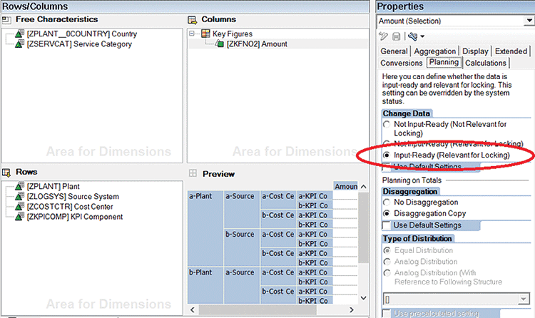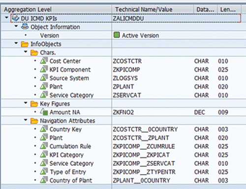 To design a data entry model in SAP BW IP, you first have to set up appropriate filters and aggregation levels by executing transaction code RSPLAN. This opens the screen in Figure 4 with an aggregation-level example for master data KPIs by site and cost center. Here you can create aggregation levels by dragging and dropping InfoObjects to the Aggregation Level area. Once you’ve made your desired changes, click the activate icon (not shown) to save and activate your changes.