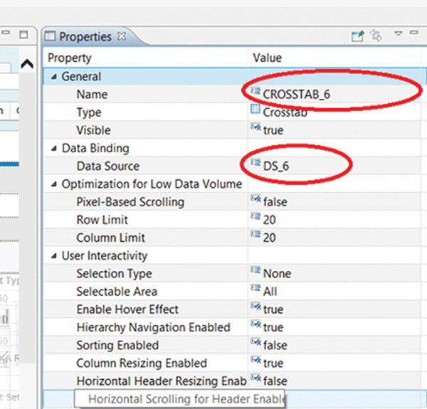 Next, for a more user-friendly interface, re-arrange data-entry panels by copying and pasting them inside the Data Entry Tab. Select the crosstab object in the Outline section (in this case, CROSSTAB_6), and click it to see its Properties (Figure 9). Then assign the data source from the Data Source list to associate it with the crosstab.