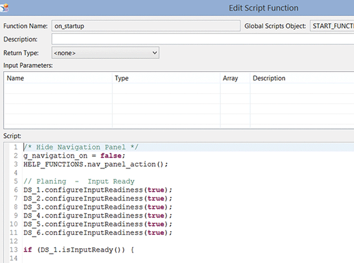 Next, you want to adjust the on_startup code for data sources to enable input readiness. Scroll down to the Edit Script Function area of the BusinessObjects Design Studio application (Figure 10). Select the on_startup function and update the code for each input-ready data source in the Script box below it. Then click the Save button (not shown) to save your changes.
