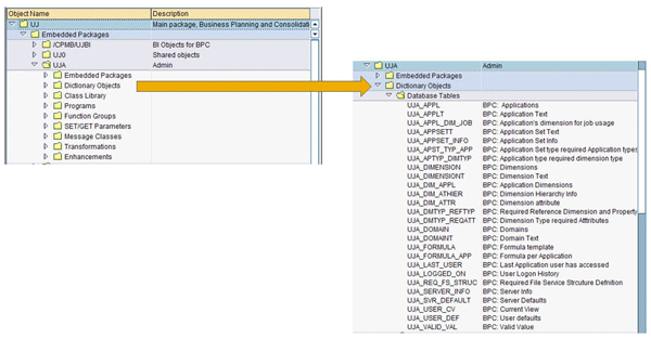 UJ sub-packages for SAP BPC components