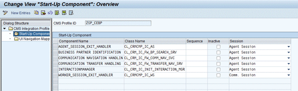 Step 4. Define the start-up components associated with this CMS integration profile by selecting Start-Up Components in the left column (Figure 5). Start-up components are ABAP classes that launch at start-up to perform specific tasks at a particular point in time (e.g., special handling of the transfer scenario to save or load custom context data to and from the call attached data).