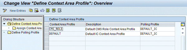 Step 6. Configure the context area to display caller and communication details in the context area at the top of the screen. You configure the context area profile by following menu path IMG > Customer Relationship Management > Communication Management Software Profiles > Define Context Area Profile. The delivered profile CMS_ROLE should suffice for most uses (Figure 7). It is beyond this article’s scope to delve into the customization of the context area components.