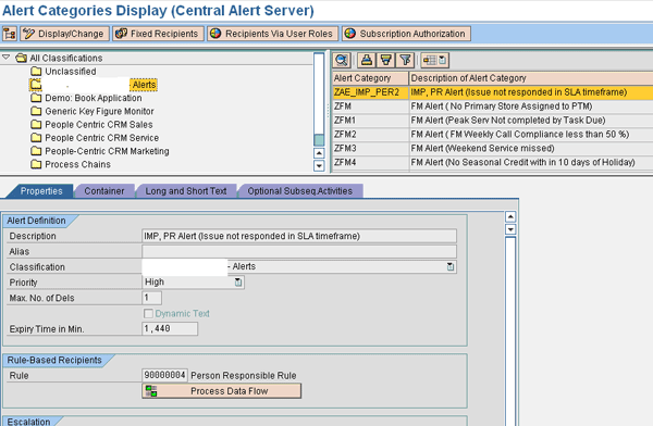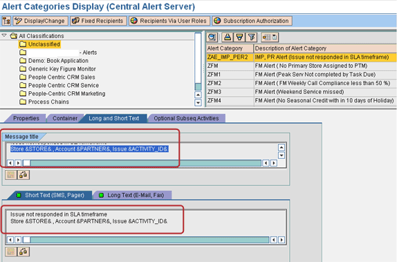 Select the Alert Category defined in your SAP CRM system