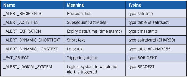 The CAF uses the alert container not only for the exchange of application-specific variables but also for the exchange of internal information. The variables in Table 2 are used for this purpose.