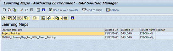 Learning Maps are SAP Solution Manager’s way for you to build training materials for your users without having to undertake buying and installing a learning management system (LMS). Rather than having to acquire an LMS and then train your users on it, you can use this feature within your already implemented Solution Manager system and a Web browser. This feature enables you to produce training materials that users can follow more easily without incurring further cost.
