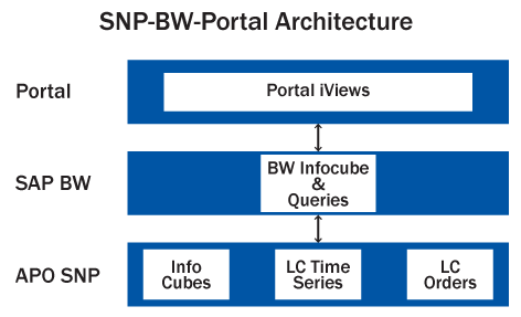 You can use SAP NetWeaver Business Warehouse (SAP NetWeaver BW) for SAP Advanced Planning & Optimization (SAP APO) reporting and for publishing Supply Network Planning (SNP) reports to SAP NetWeaver Portal. To display the SNP data on the portal, you need to architect an end-to-end solution from SNP liveCache to SAP NetWeaver BW InfoCubes and queries to publish to the SAP NetWeaver Portal, which is a complex task.