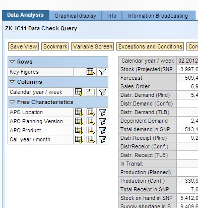 Thus, SNP is used to calculate the distribution, purchasing, and manufacturing plan for a company to meet customer demand and maintain the desired service level. It uses both heuristics and mathematical optimization methods to create feasible manufacturing and distribution plans. The SNP interactive planning book allows users to display and interactively modify planning data. The system processes any changes directly via liveCache, but it is not user friendly to report on planning book data. Instead SNP planning data such as inventory levels, planned orders, and purchase requisitions can be sent to SAP NetWeaver BW for reporting. It is much easier to run reports in SAP NetWeaver BW, and it also does not affect SAP APO performance.