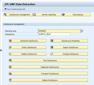 Now that you can copy the planning data to LC time series key figures in the SNP planning area, you create an extractor for the SNP planning area to extract the data. Create the extractor using transaction /SAPAPO/SDP_EXTR for DP/SNP Data Extraction, as shown in Figure 6.