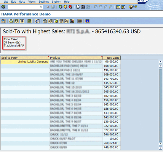 - Traditional ABAP – 68 seconds