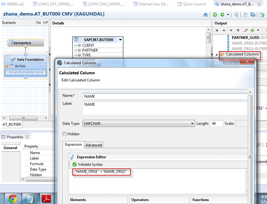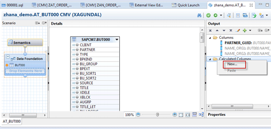 Create another attribute view AT_BUT000, add the table BUT000, and create a calculated column by right-clicking the Calculated Columns folder in the Output pane. Click the New… button (Figure 16). This opens a pop-up screen (Figure 17).