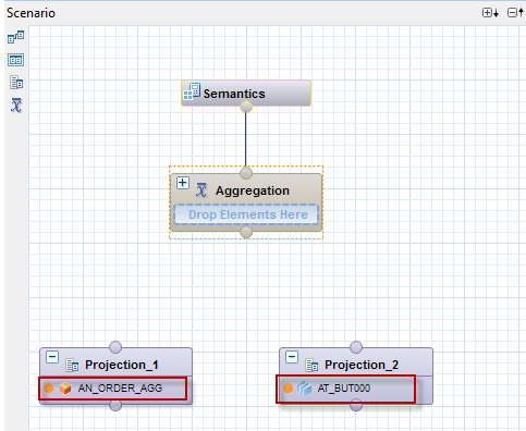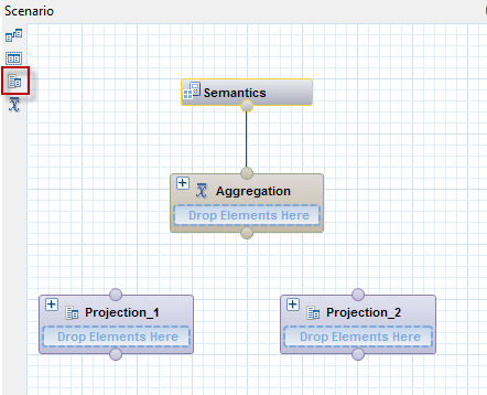 Add a Join node by dragging and dropping the highlighted join icon and link the Projection nodes to it (Figure 43). The Join node is needed to join the views in the Projection nodes.