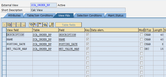 - Expose the attribute views as external ABAP views – ZAT_ORD_H, ZAT_ORD_I and ZAT_BP